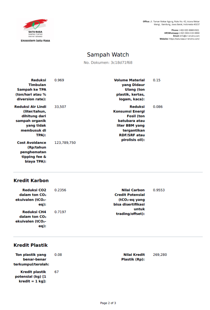 Melalui platform ini, setiap kilogram sampah yang masuk ke Tempat Pengolahan Sampah Terpadu (TPST) tercatat secara digital, diverifikasi, dan diolah menjadi laporan ESG, kredit karbon, kredit plastik, serta sertifikat circularity yang dapat digunakan oleh pemerintah, mitra swasta, hingga investor.