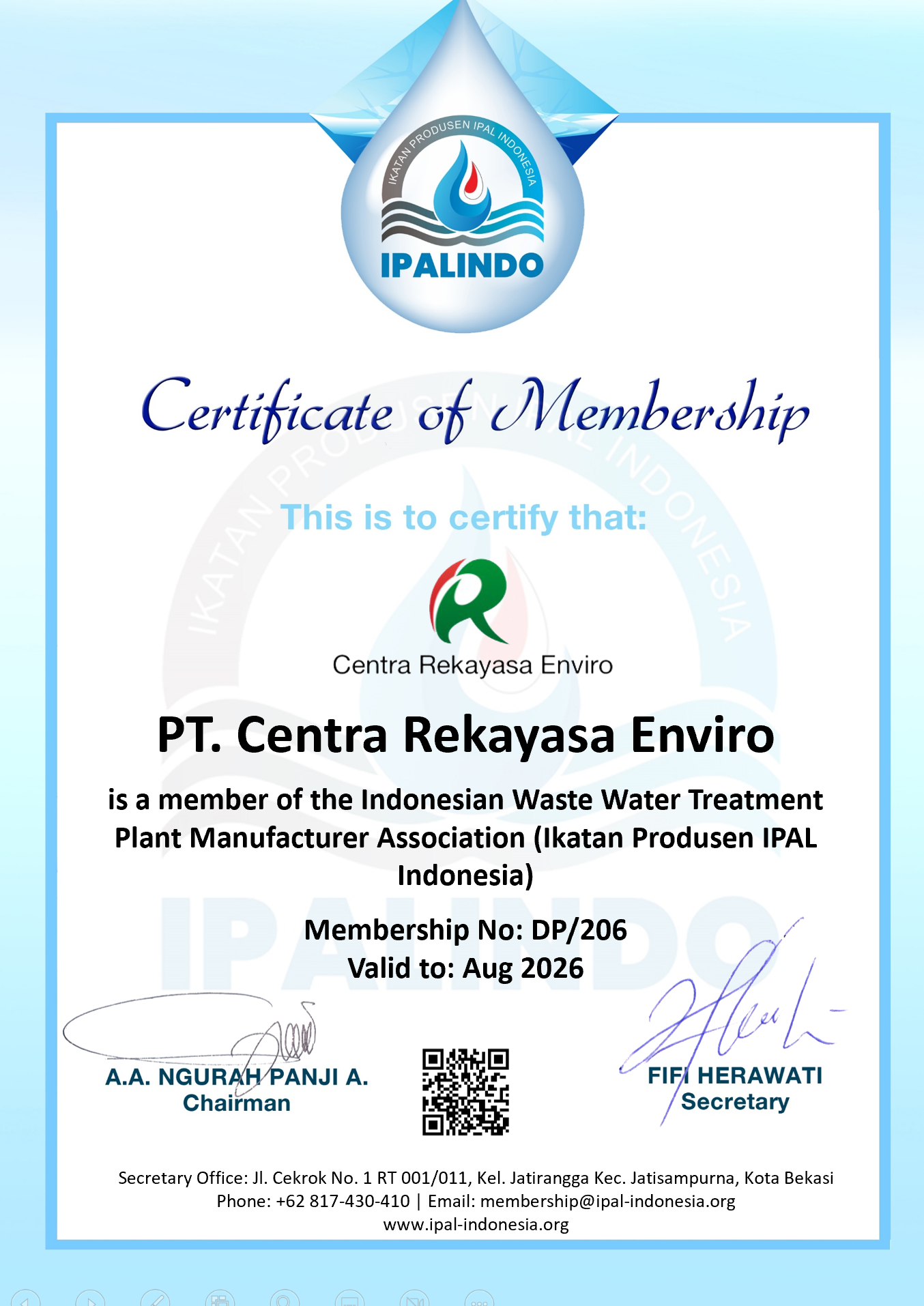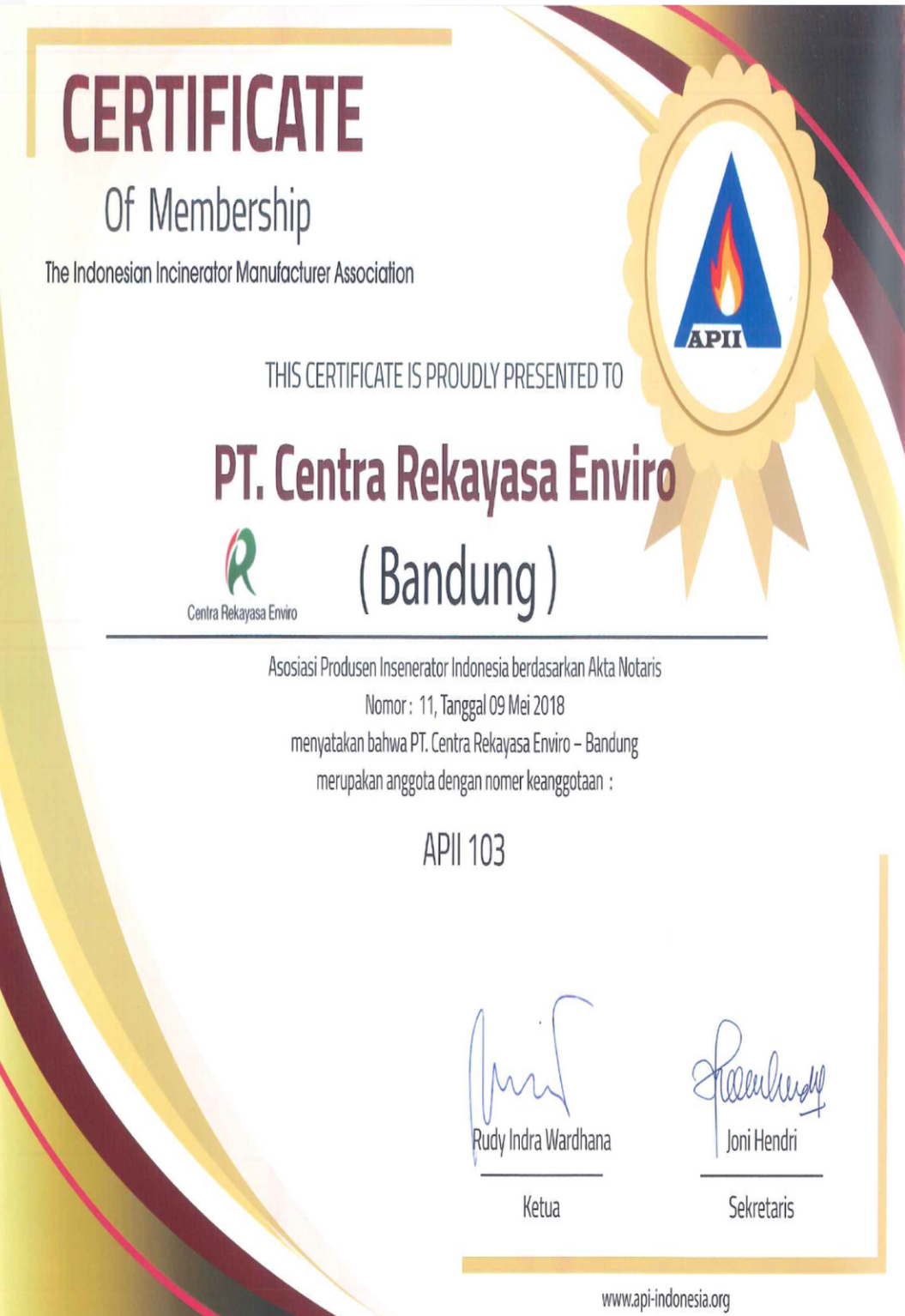 PT Centra Rekayasa Enviro berkomitmen untuk memberikan layanan terbaik dengan standar internasional. Berikut adalah sertifikasi dan penghargaan yang telah kami raih: